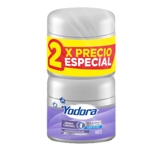 Yodora Desodorante de Mujer Derma-control Crema Oferta 2 Frascos X 100 Gramos