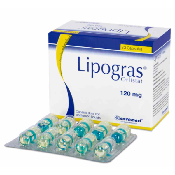 Etiquetas: lipogras 120 mg x 30 capsulas, "Lipogras, medicamento para obesidad, orlistat, 120 mg, 30 cápsulas, tratamiento pérdida peso, medicamento gastrointestinal"
