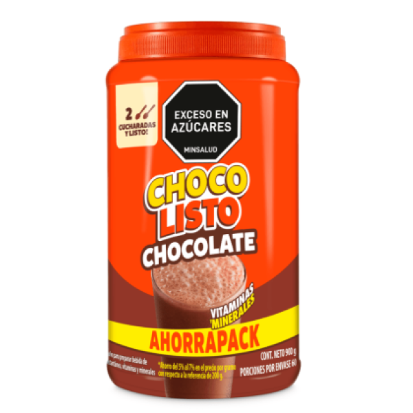 Chocolisto mezcla en polvo para preparar Tarro X 900 Gramos