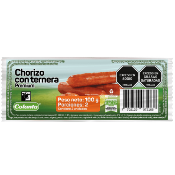 Etiquetas: colanta chorizo con ternera x8un x100 gr