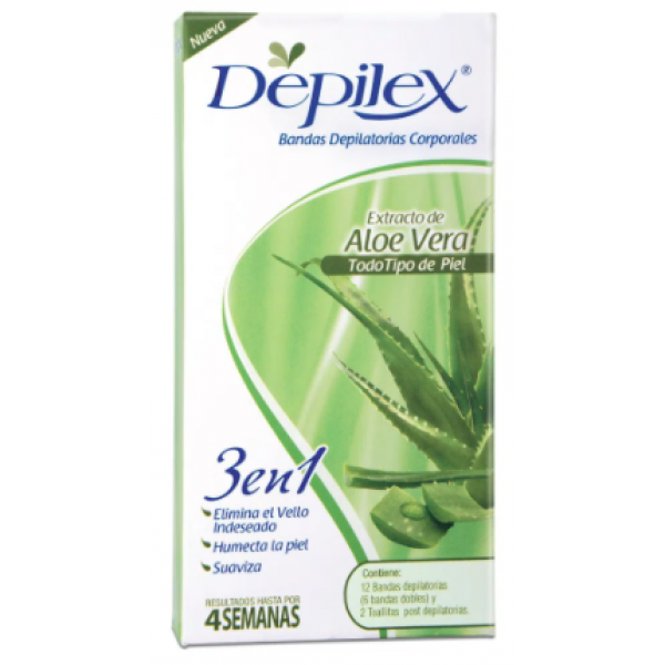 Depilex Bandas depilatorias corporales extracto de aloe (todo tipo piel) Caja X 12 Unidades