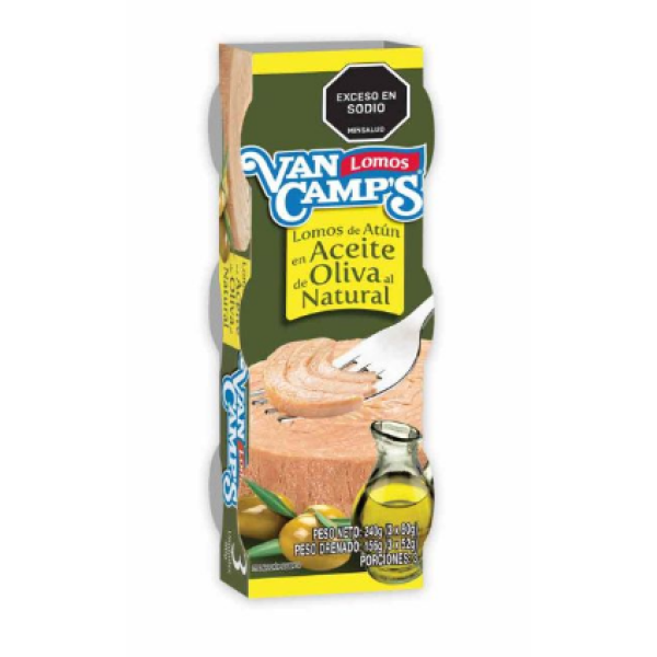atun van camps lomos en aceite oliva al natural x 3 unidades