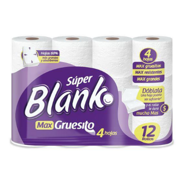 blanko papel higienico max gruesito 4 hojas x 12 unidades