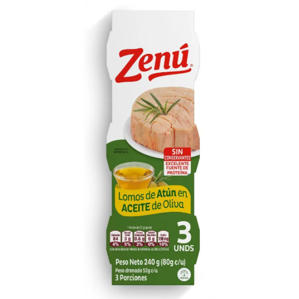 Zenú Lomos de Atún en aceite de oliva X 3 unidades 240 Gramos (80 gr)