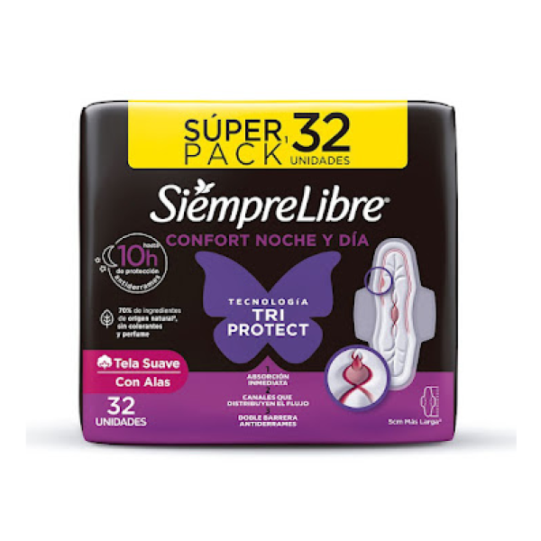 Siempre Libre Noche y Día tela suave con alas Paquete X 32 Unidades