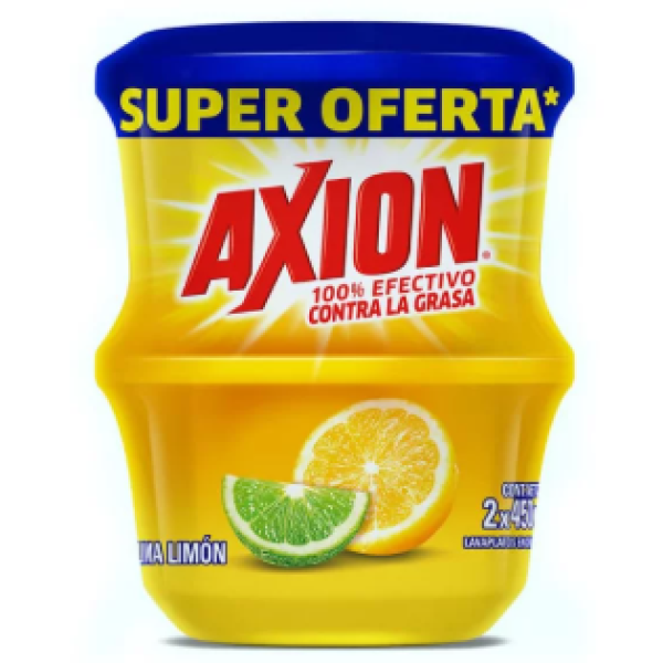 Axion Lima Limón contra la grasa lavaplatos en crema Oferta 2 Potes X 450 Gramos