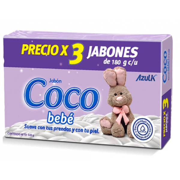 Jabón Coco Bebe 3 Barras X 180 Gramos