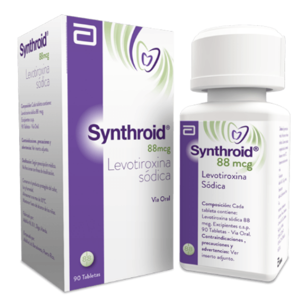 Etiquetas: Synthroid 88 Mg Frasco X 90 Tabletas, tiroxina, hipotiroidismo